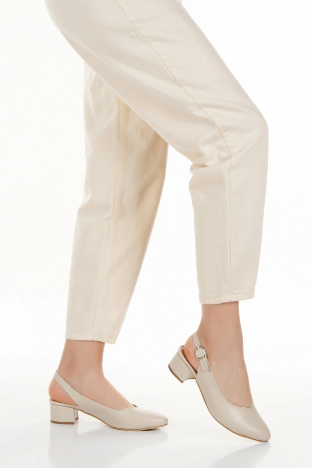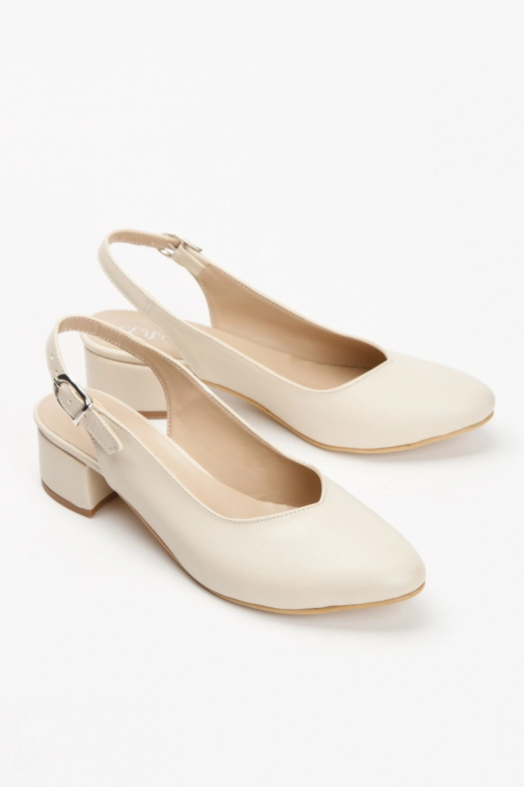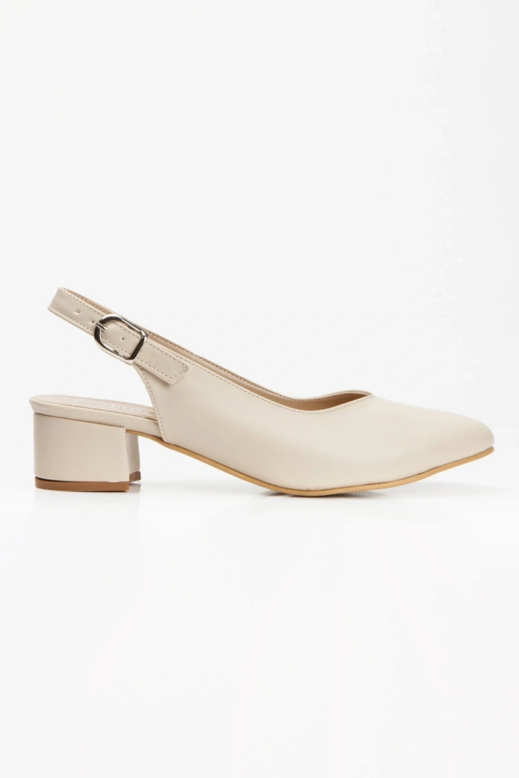 Kadın Ten-Bej Suni Deri Cİlt Arkası Açık Kısa Kalın Topuklu Şık ve Rahat Stiletto