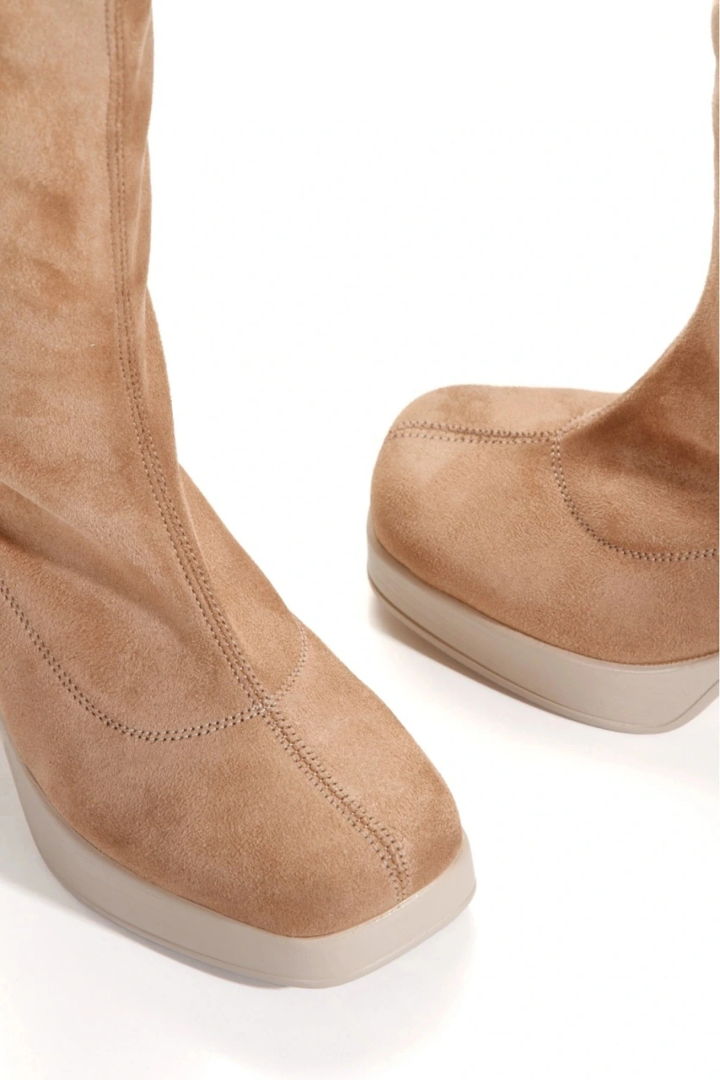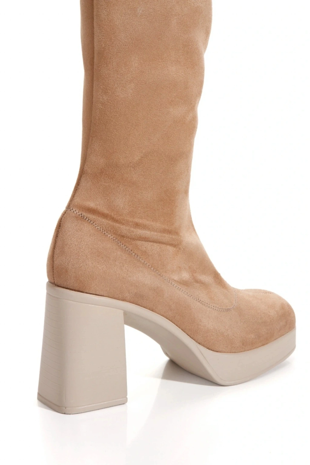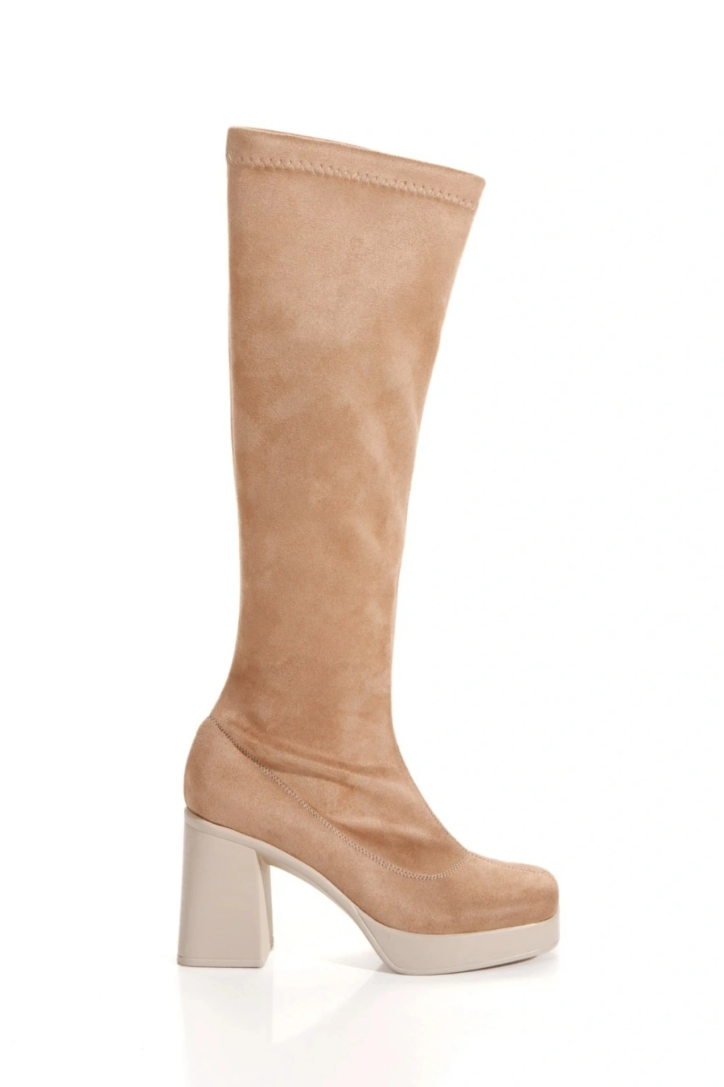Kadın Vizon Süet  Streç Yeni Tarz Küt Burunlu Hafif ve Yüksek Topuklu Fermuarlı Şık Rahat Çizme