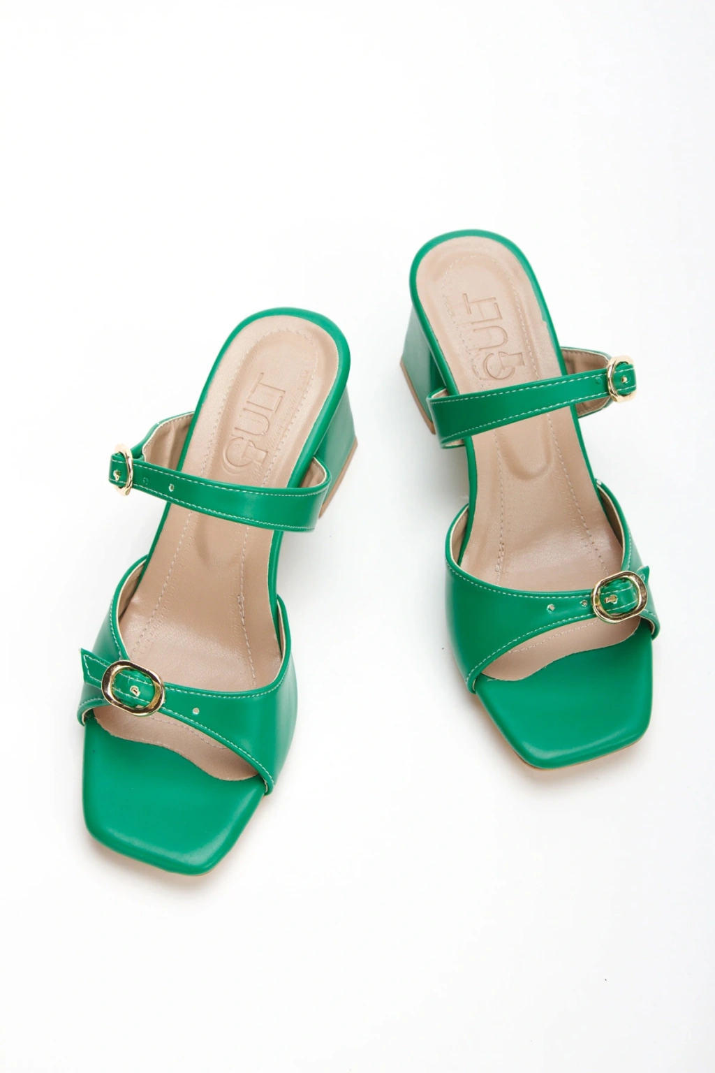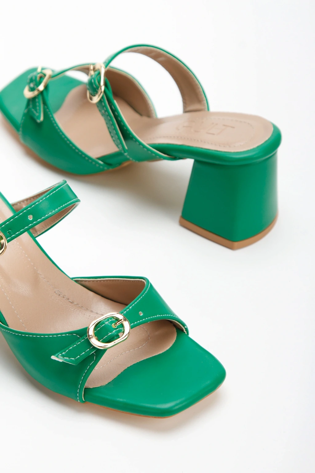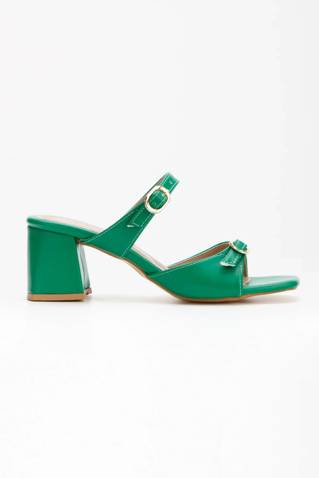 Kadın Yeşil Suni Deri Cilt Kalın Topuklu Şık Toka Detaylı Rahat Terlik