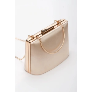 Kadın Altın Saten 7 cm İnce Topuklu Şık Damla Taşlarla Bezenmiş Rahat Stiletto ve Çanta Kombini