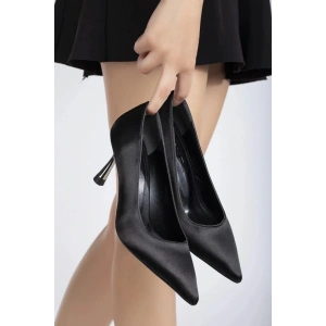 Kadın Siyah Saten Şık Tarz Topuklu Rahat Stiletto