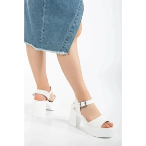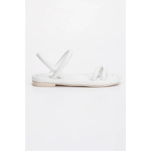 Kadın Beyaz Suni Deri Cilt Tek Bant Yumuşak Tabanlı ve Kalın Rahat Tabanlı Yazlık Sandalet
