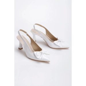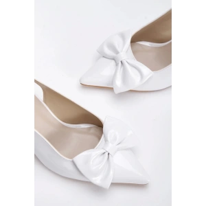 Kadın Beyaz Rugan Fiyonklu Kısa İnce Topuklu Sivri Burunlu Şık Stiletto Ayakkabı