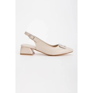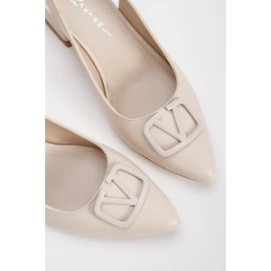 Kadın Bej Cİlt Arkası Açık Kısa Kalın Topuklu ve Şık Toka Detaylı Rahat Stiletto