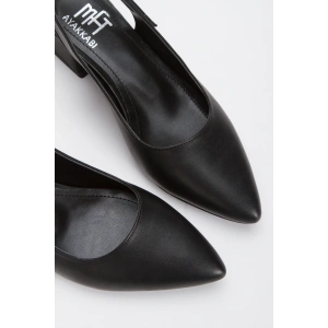 Kadın Siyah Suni Deri Cİlt Arkası Açık Kısa Kalın Topuklu ve Rahat Stiletto