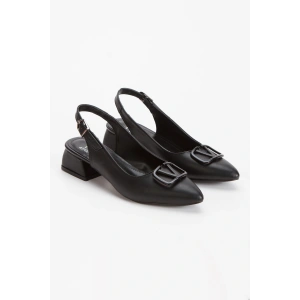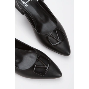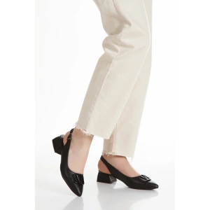 Kadın Siyah Cİlt Arkası Açık Kısa Kalın Topuklu ve Şık Toka Detaylı Rahat Stiletto