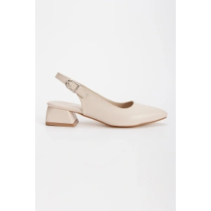 Kadın Bej Suni Deri Cİlt Arkası Açık Kısa Kalın Topuklu ve Rahat Stiletto